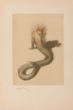 Lilith is a lovely and rare lithograph that is part of a series of lithographs based on Biblical stories. This intimate and delicate piece emphasizes the seductive and somewhat demonic nature of Eve when under the influence of the serpent she is taking its shape.