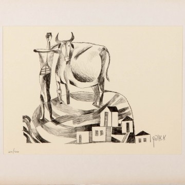 The lithograph New Immigrants belongs to a portfolio by Abraham Ofek titled the New Immigrants. Ofek’s naive and graphic style created beautiful and sensitive images of the lives of the immigrants in Israel. The high quality of the print makes it look like a pencil drawing.