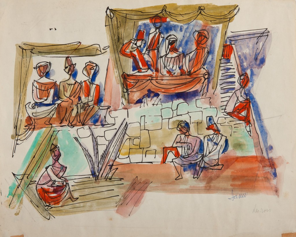Watercolor and ink on paper