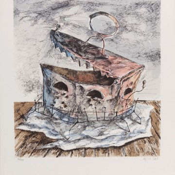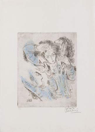 Etching, hand colored