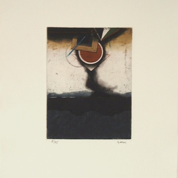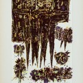 Four Seasons is abstract scenery depicting the four seasons of the year through a mixture of shapes and contrasted colors (brown and black along with white and yellow). Beeri succeeds in creating a dynamic and eventful etching where games of power and dominance exist owing to his mastering of the etching technique.